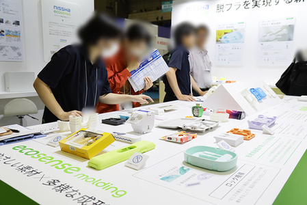 Comprehensive exhibition featuring environmentally friendly materials such as biodegradable resins and cellulose, as well as resources and materials as recycling technology and circular economy.